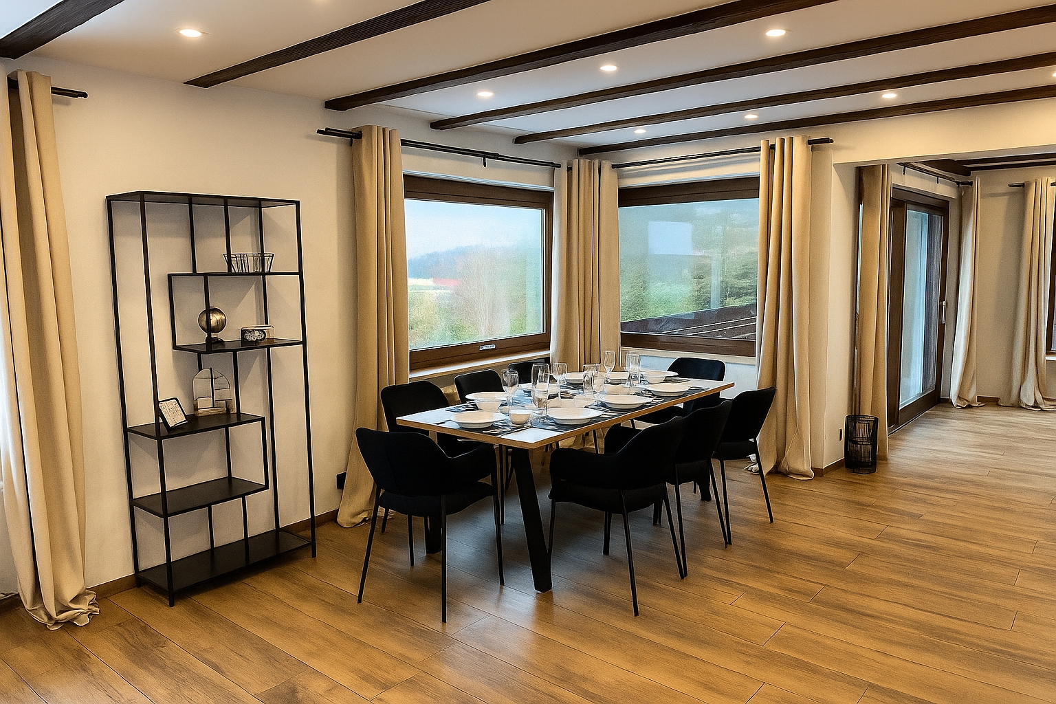 Die Wohnung verfügt über 4 Parkplätze, ideal für Gruppen, die mit mehreren Fahrzeugen anreisen. Outdoor Equipment wie E-Bikes, Mountainbikes und Ski können sicher und problemlos in der Garage verwahrt werden. Nur 7 Minuten entfernt befindet sich der nächste Skilift, während das weltberühmte Schloss Neuschwanstein nur eine 30-minütige Fahrt entfernt ist. Diese Unterkunft ist perfekt für aktive Gruppen, die sowohl die Natur als auch Kultur und Geschichte der Region erleben wollen. Hier verbinden sich Abenteuer und Entspannung auf einzigartige Weise.