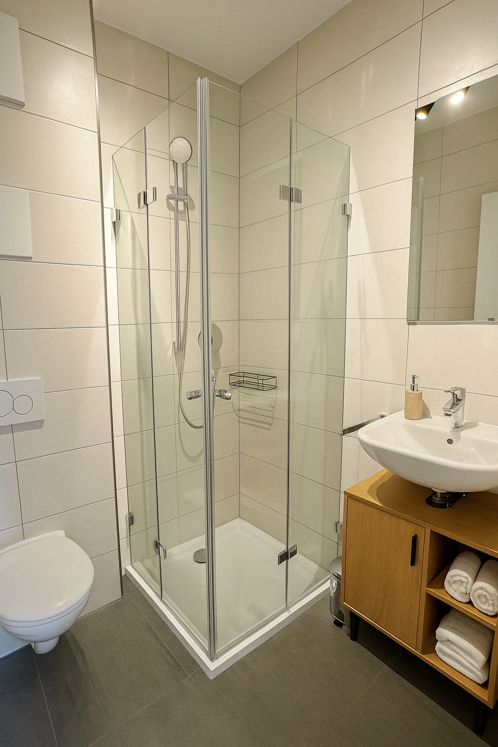 Bitte beachte: Die Fotos der Einrichtung sind aktuell noch computergeneriert. Die tatsächliche Einrichtung kann von den Fotos leicht abweichen. Die Wohnungen sind aber ab 20.11. bezugsfertig und die Fotos werden dann aktualisiert.